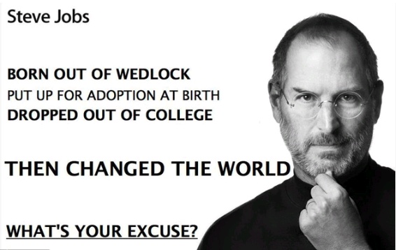 “Jobs was abandoned at birth and put up for adoption. The one condition his biological parents gave the adoption agency was that the parents of the family that would adopt the baby would have to be college graduates. The lawyer that was supposed to get Jobs ended up changing his mind when the baby was a boy and not a girl. And so Paul Jobs, a high school dropout ended up adopting Steve Jobs.